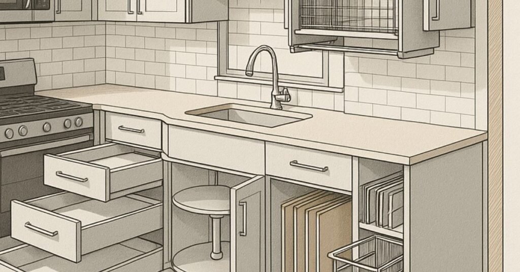 Drawer organizers and dividers are invaluable for maintaining an organized kitchen. Use inserts to categorize items, ensuring everything from silverware to spices has its designated place. A spice drawer with slanted rows provides easy access and visibility. These simple solutions help corral clutter and enhance the functionality of your kitchen drawers, making it easier to find and store items efficiently.