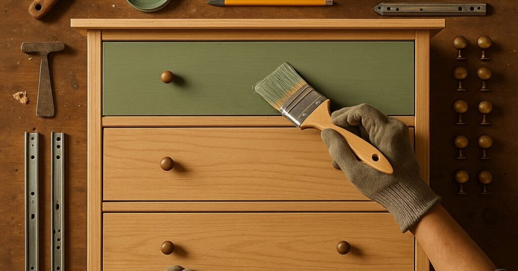This ensures the paint adheres properly, resulting in a professional-looking dresser makeover for your kitchen.